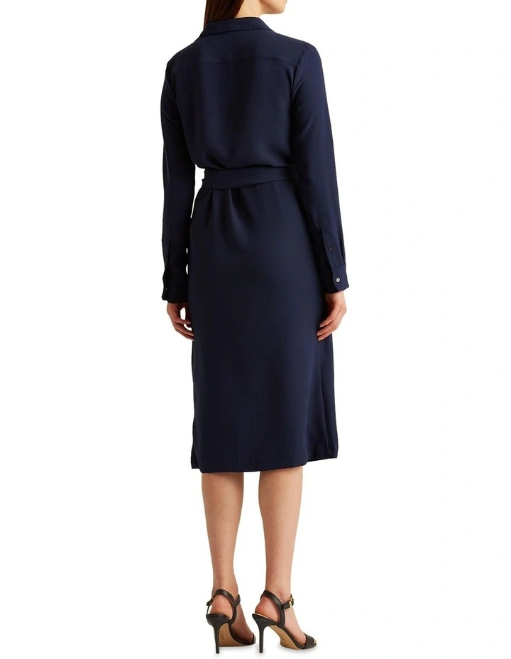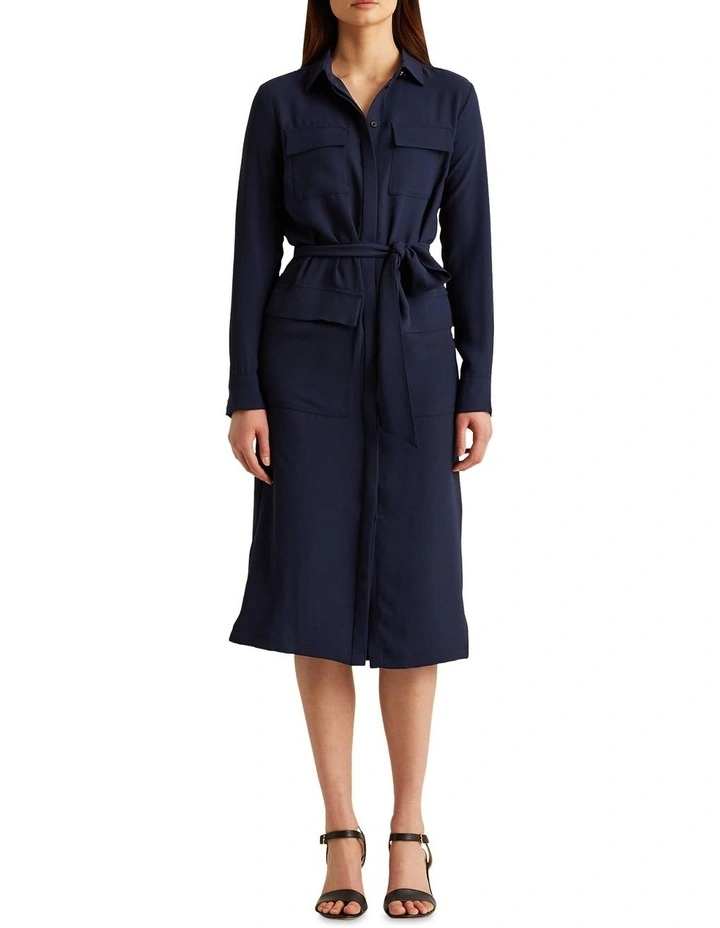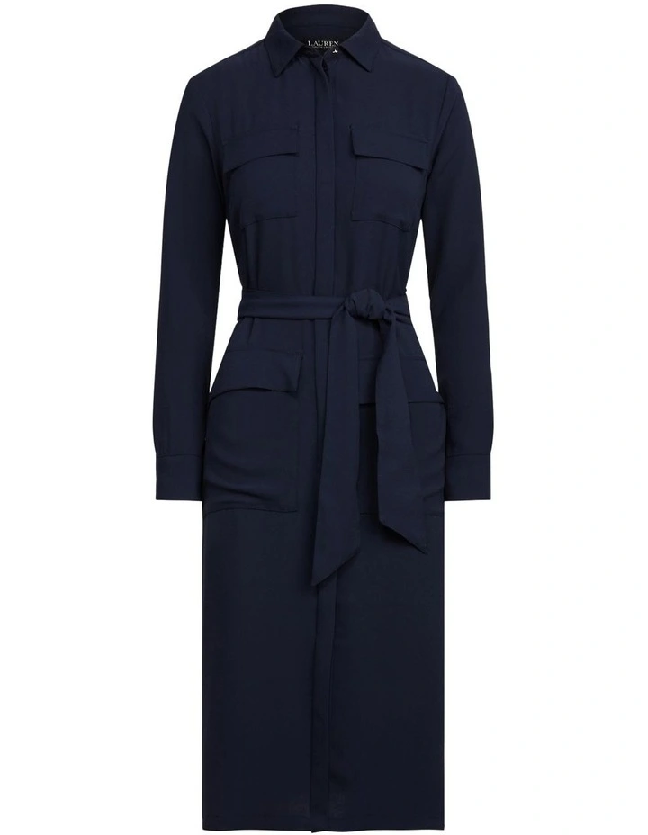 Cut from airy georgette, this long-sleeve dress defines off-duty style thanks to an array of pockets and a belted waist.