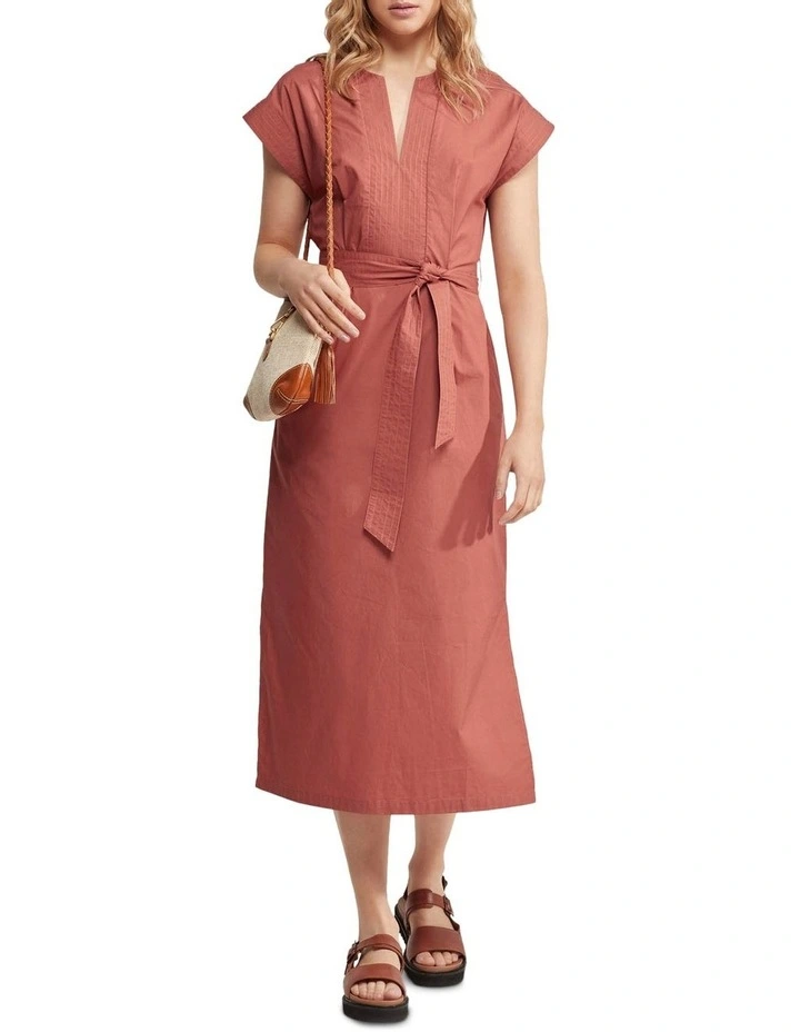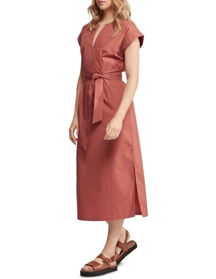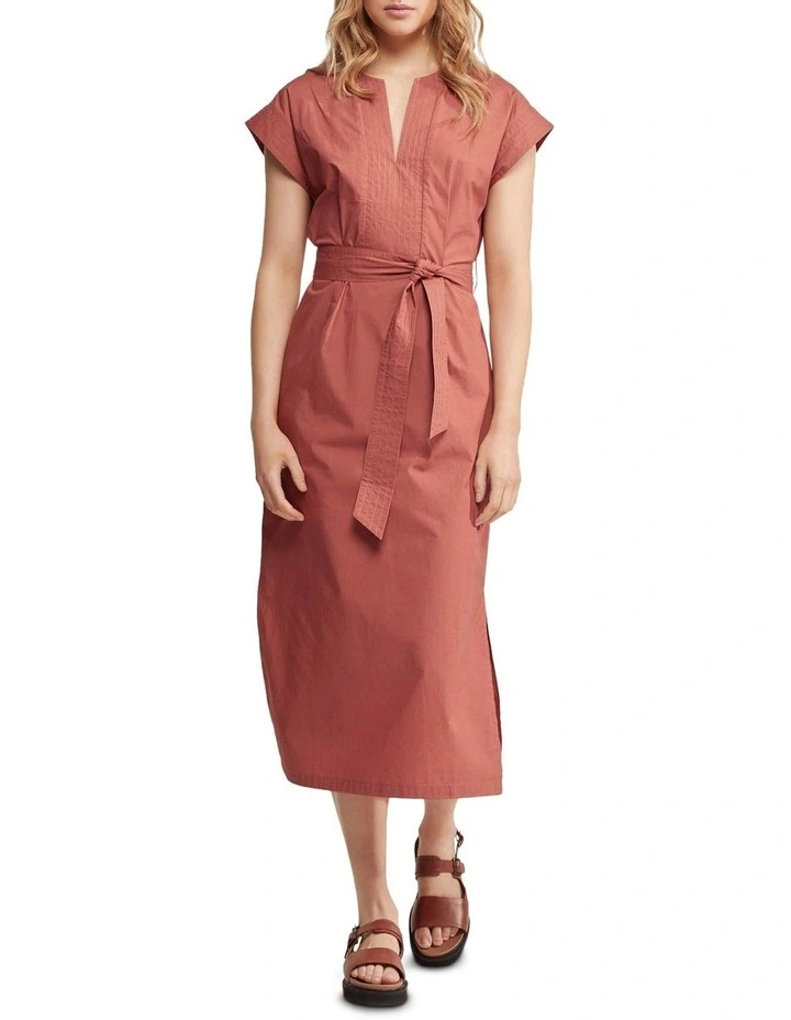The Deja Cotton Poplin Dress is a contemporary take on boho chic. This gorgeous sun dress is crafted from 100% cotton with a smooth poplin finish. It is cut in a relaxed fit and features a tunic-style notch neckline with stitch detail, tie waist, short sleeves, side splits an invisible back zip. Just add some leather sandals to complete the look.