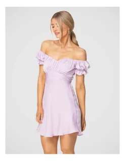 - Relaxed mini length skirt with ruffled hem; crossover style