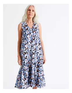 Budget 🎉 Regatta European Linen Blend Sleeveless Button Front 👗 Dress In Navy/Blues/Pink Floral 🔥