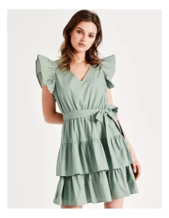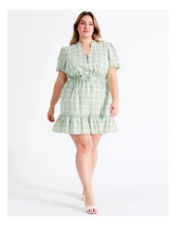 Discount ๐ฏ Tokito Curve Puff Sleeve Check Recycled Cotton Blend Mini ๐ Dress In Sage ๐ฅ