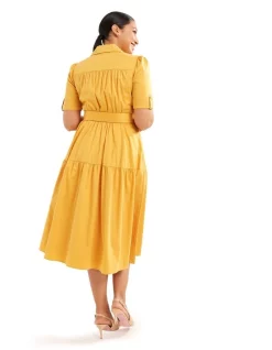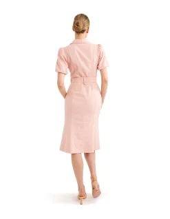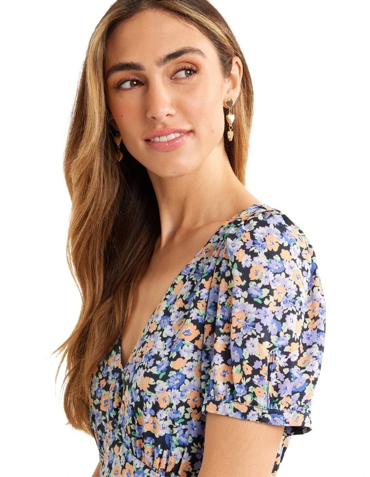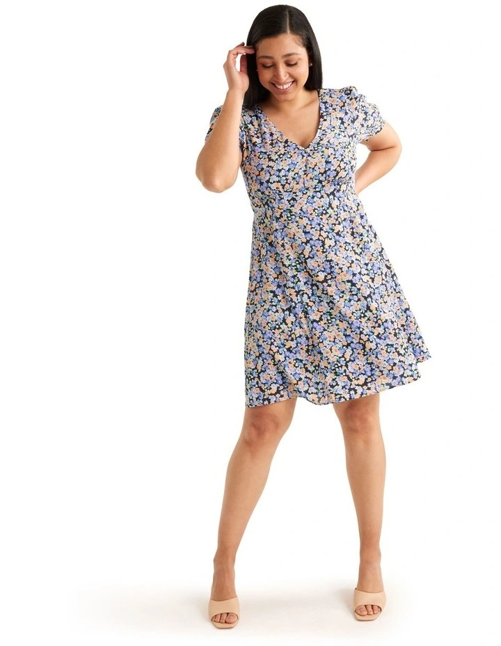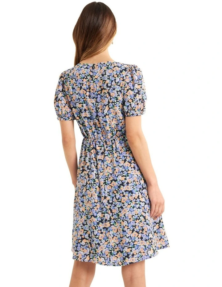 Looking for something special to wear on your next night out? Check out the Apple Blossom Dress! This unique piece is made from recycled fabric, so you can feel good about wearing it. The V-neckline and self-fabric buttons add a touch of class, while the empire waistline and elasticized waist create a flattering silhouette. The above-the-knee length makes it perfect for a night on the town, and the CB invisible zip provides a finishing touch.
