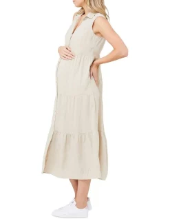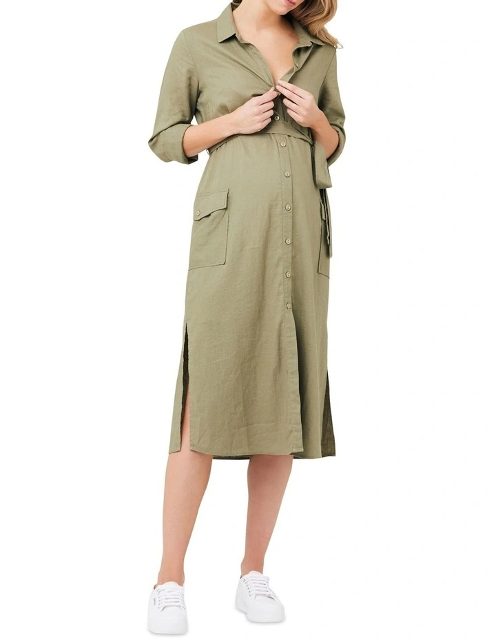Look no further than our Riley Longline Shirt Dress for a classic summer outfit. Made from a soft linen viscose blend with long sleeves, side pockets and an A-line skirt, you will also find the button up front provides easy nursing access when your little one arrives.