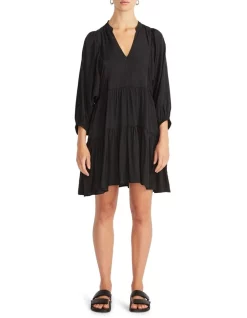 The Stevie Smock Mini Dress by Staple the Label is a relaxed style mini with a v-neckline, tiered skirt and functional pockets. Extended three quarter length sleeves are finished with an elastic cuff.